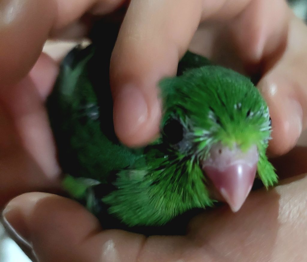Posted on 15 January, 202323 January, 20232023.1.15 Pacific Parrotlet 太平洋鸚鵡 開心果 第一次探訪牠 緣於藍妹七喜同鄰居Kelvin,讓恩恩愛上了太平洋鸚鵡,也讓我們萌生起接收七喜之女–開心果。 期待佢快啲戒奶,可以帶她回家 一個星期又長大了