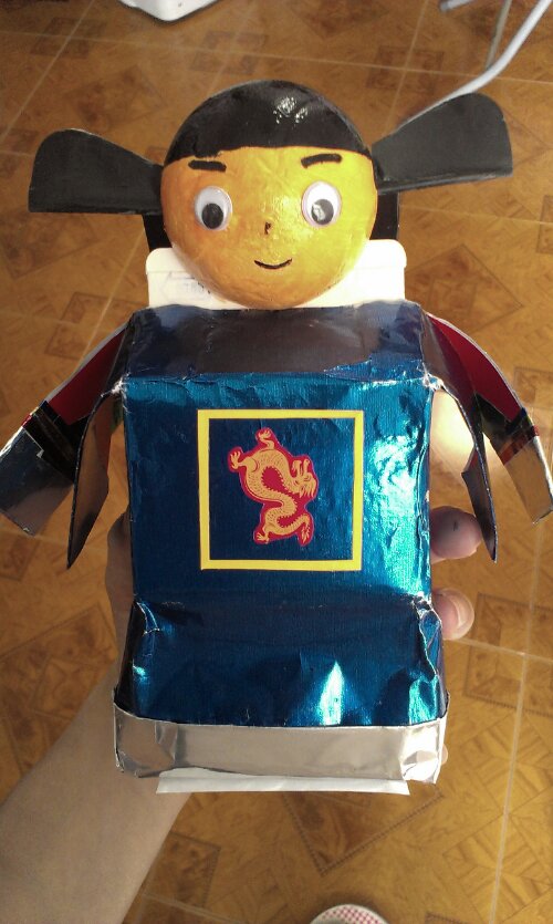 第一個美勞作品就係呢個跟一個圖書設計的韓國服公仔,太耐冇做勞作,完全小看了一個簡單公仔的製作時間,花了我不少時間才能完成。最難構思的是如何讓以琳參與?很多自己也要很細心才能剪貼完成的地方,也怕比佢一手糟蹋了不敢讓她參與太多。雖然作品不算很特別,但其實倒是媽媽有點成功感。