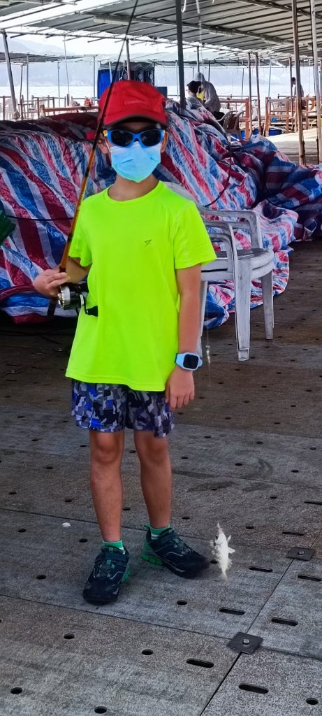 今日是公眾假期又剛好不用返工返學, 於是一家人去魚排釣魚, 這是兩個寶貝的第一次, 恩恩好期待去魚排, 她經常問我魚排是怎麼樣, 雖然今日她終於可以去魚排釣魚, 但她剛考身體不適, 還發燒起來, 見她只能長期坐著休息, 間中試釣幾分鐘, 幸好她還能釣上三條泥鯭, 琳琳也釣上一條魚仔, 不過琳琳就表示有點悶, 我也明白沒魚釣的時候的確是很悶的, 這次魚排之旅是給他們一次新鮮體驗。老婆就釣了數條泥鯭, 我就約了數條雜魚, 加埋總共十條八條, 臨離開時恩恩想帶回家享用, 於是晚上就蒸了來吃, 今次算是她們第一次食自己釣回來的魚。