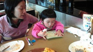 Posted on 25 March, 20127 October, 2021 by sampson以琳食 pizza 原來以琳都喜愛吃pizza和意粉,其實我覺得個pizza都幾濃味,以為她不會吃,原來她並不抗拒,仲好鬼大食添!