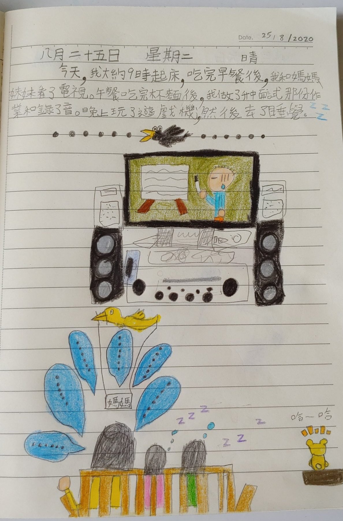 Posted on 28 August, 20207 October, 2021 by sampsonHi Fi 畫作 家姐早前學習寫日記,見她打開了其中一頁放在桌上,我就那被她所畫的一幅插畫所吸引,她將家中的 Hi Fi 變成一幅精美的彩色插畫👍。